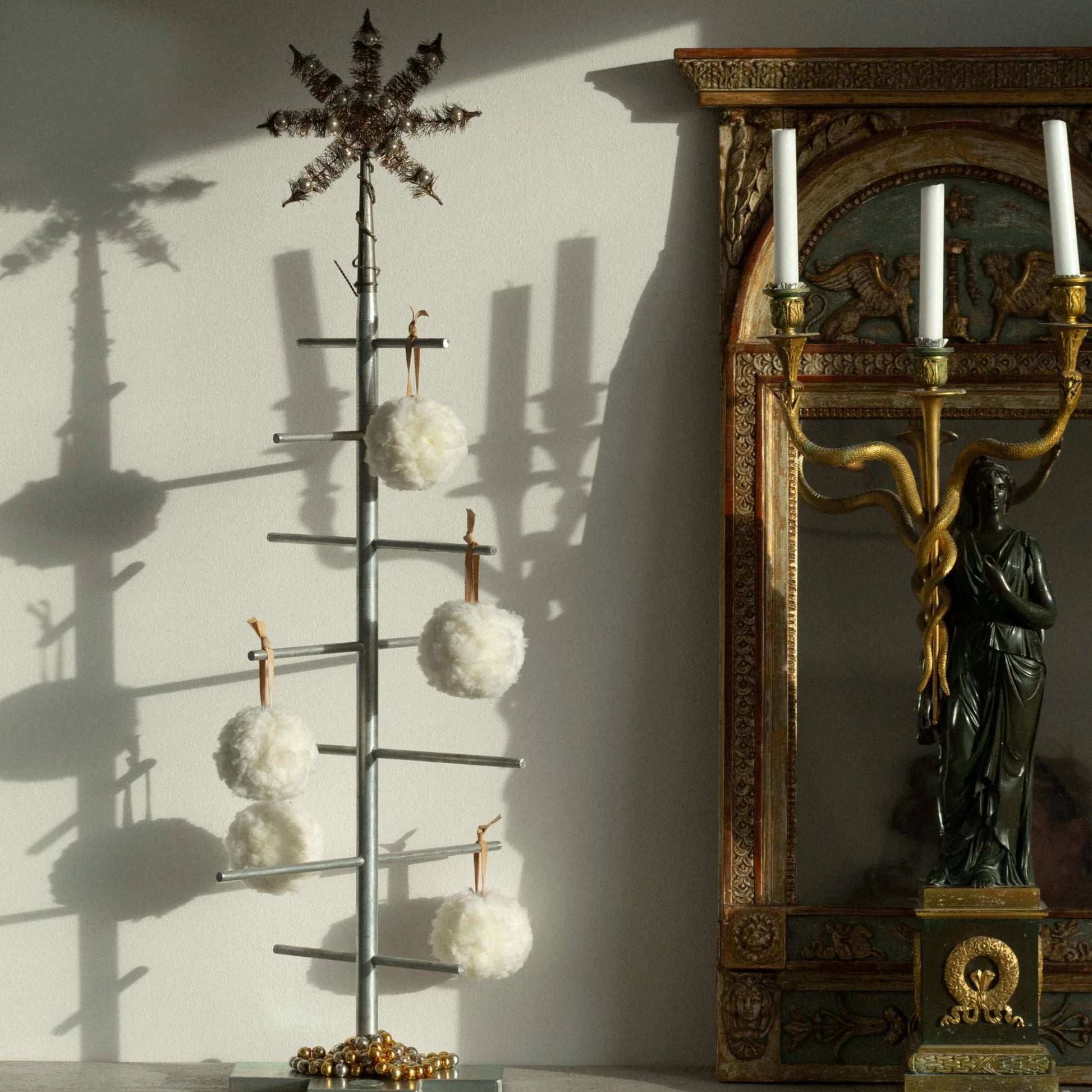 Drawing inspiration from an antique Christmas ornament from the early 1910s, this large snowball ornament is handmade from the finest merino wool, giving it a soft, natural feel that resembles freshly fallen snow. Carefully crafted to the highest standards, this wool snowball ornament features a hand-dyed ribbon in a colour true to the original vintage style. This high-quality vintage-inspired Christmas ornament brings a cozy, timeless feel to any holiday decor. Perfect for adorning your Christmas tree or showcasing in a festive display, it adds a touch of elegance and nostalgic holiday spirit to your seasonal decorations.