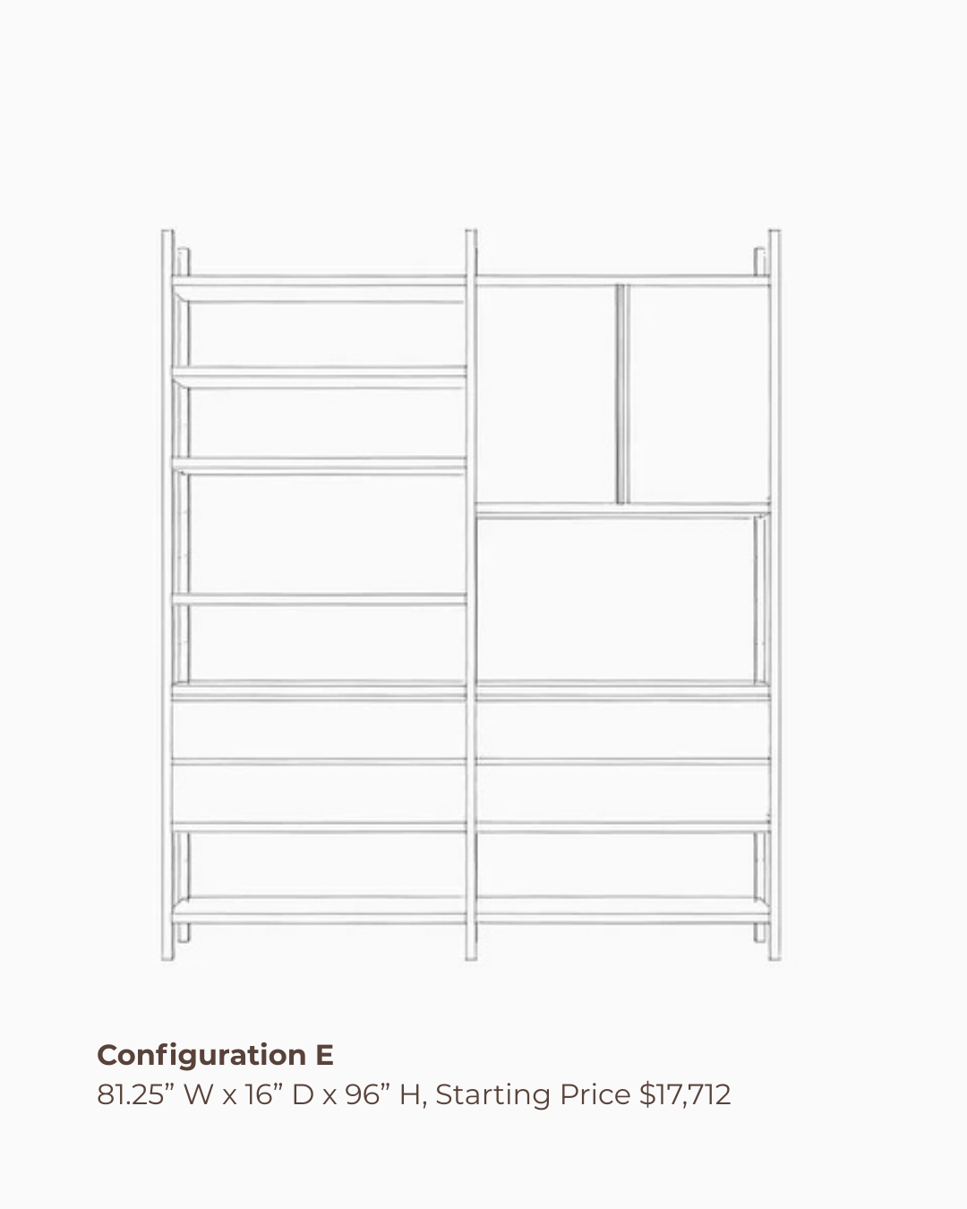 Where traditional millwork and built-ins consume space, the Pavilion Shelving System creates it—expanding a room’s use without intrusion and adaptable enough to move when you do. It carries the refinement of millwork without the constraints, resolving a space with clarity.