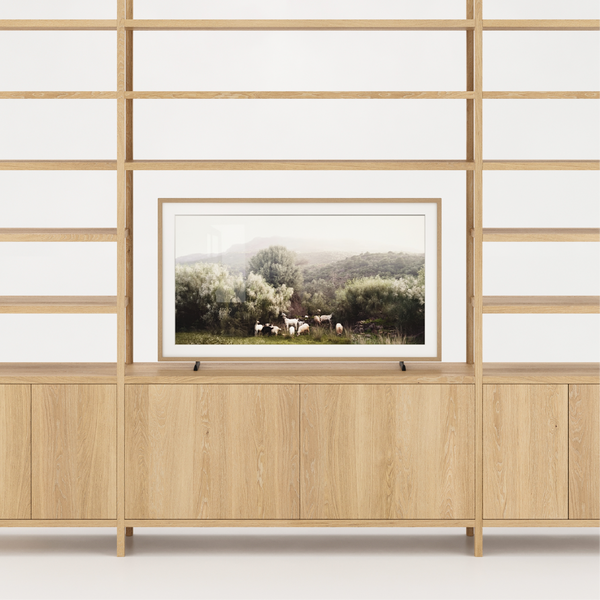 Most systems start with a product. This one starts with your room. Crafted in solid wood, the Pavilion Shelving Unit is made to fit the exact shape of your space—wall to wall, floor to ceiling, or something in between.