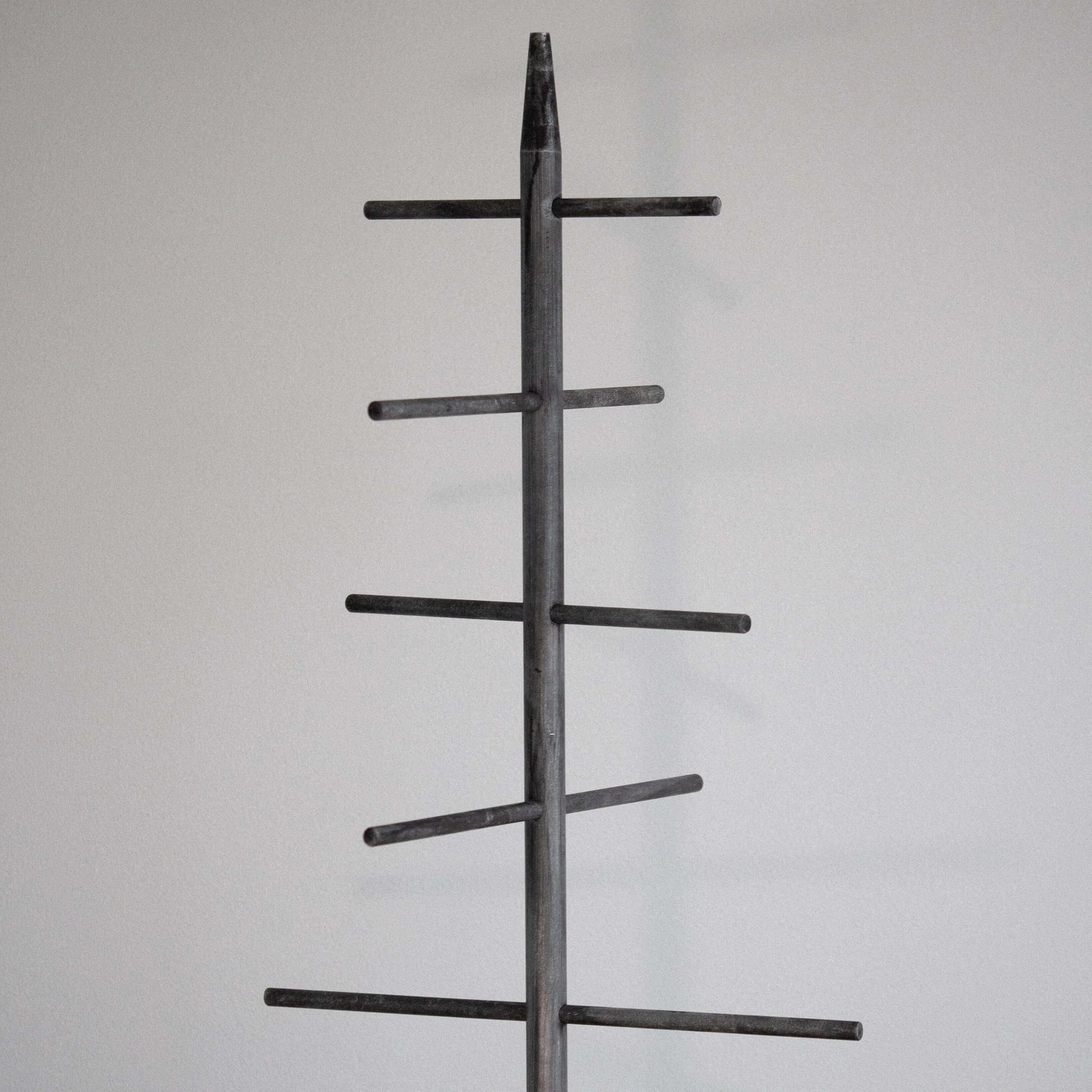 This is our stunning tall zinc Christmas tree in dark patina finish, with a height of 80 cm. This tree boasts a modern design with 7 distinct branches, ranging from 21 cm to 41 cm in length. The dark patina adds a touch of sophistication and depth, making it a standout piece in your holiday decor. Perfect for adorning with ornaments, this tree combines traditional festive charm with a contemporary twist. The unique base, proudly featuring our logo, adds to its stylish appeal, ensuring it enhances any modern interior. This is only the tree without ornaments. Comes with a large cotton bag to store the tree.